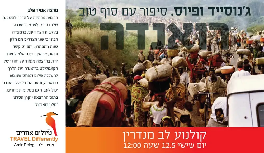 הרצאה מרתקת על הדרך להשכנת שלום ופיוס לאומי ברואנדה בעקבות רצח העם. ברואנדה הבינו כי שני הצדדים הם חלק שווה מהפתרון, והפיוס קשה וכואב, אך אין ברירה אלא לחיות יחד. בהרצאה נעמוד על יחודו של הקונפליקט ברואנדה ועל הדרך להשכנת שלום ולפיוס שמצאו ברואנדה, והאם המודל של רואנדה יכול לעבוד גם במקומות אחרים.